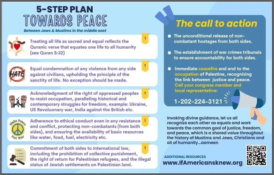 4. A powerful call to action, urging our neighbors to join our struggle, demand a ceasefire, and end the occupation by pressuring public officials.